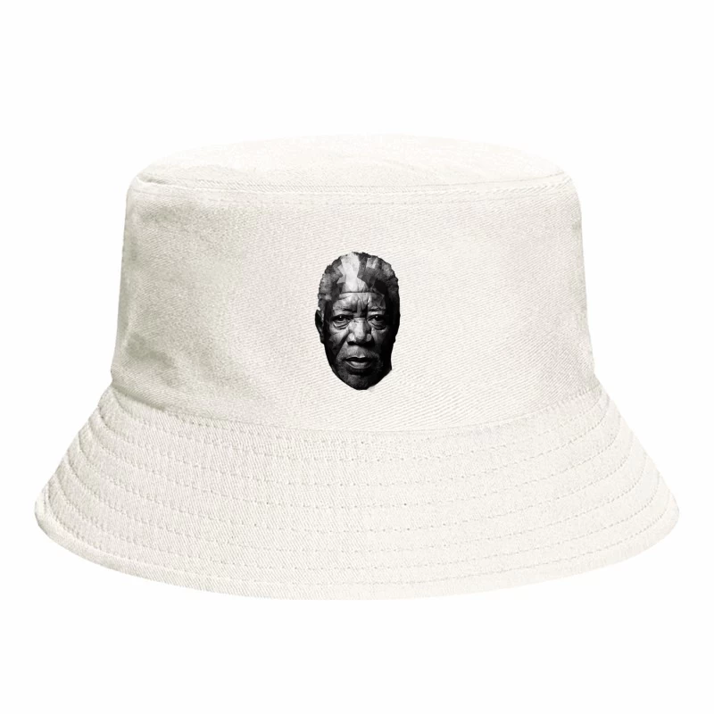 Artistic Black and White Portrait of Elderly Man with Intense Gaze Bucket Hat