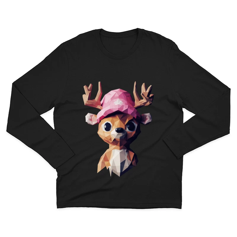 Cute Low Poly Deer with Pink Hat and Antlers Male Long Sleeve T-Shirt