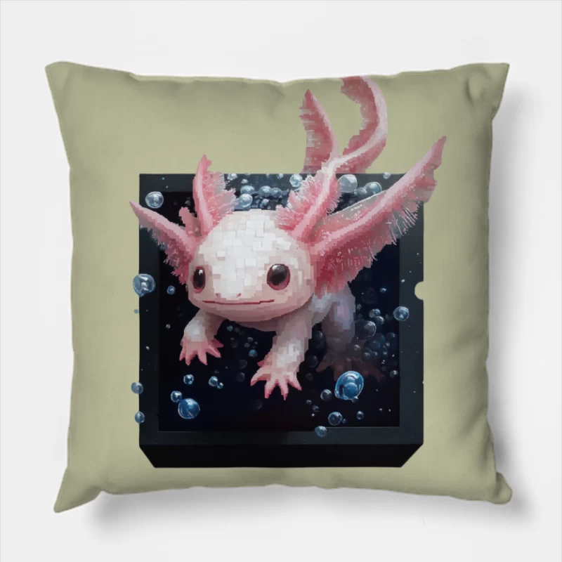 Minecraft Pixelated Axolotl: Underwater 3D Digital Artwork Throw Pillow