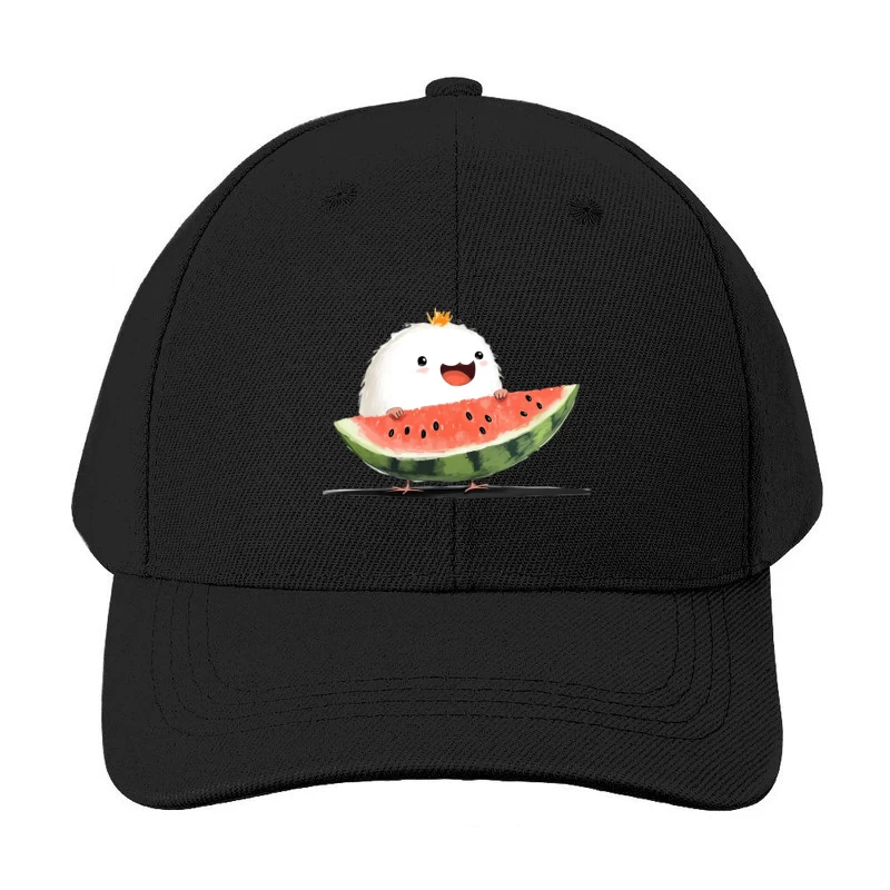 Cute Cartoon Character Enjoying Watermelon in Simple Digital Art Style Baseball Cap