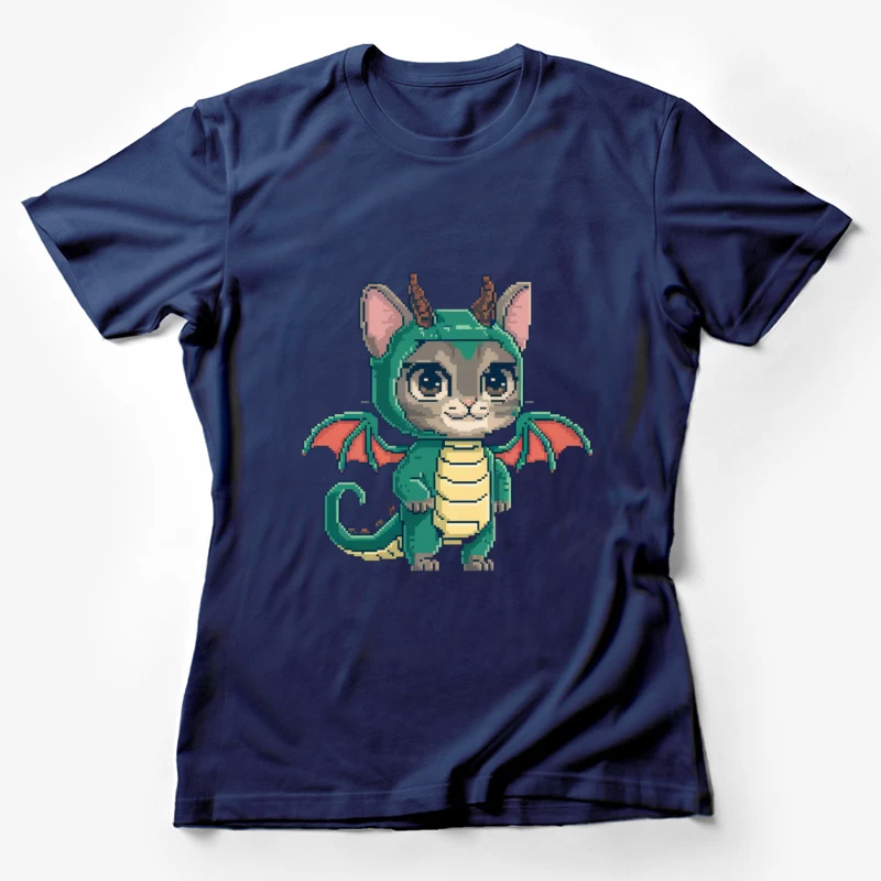Cute Pixel Art Cat in Dragon Costume: Fantasy Gaming Character Design Female T-Shirt
