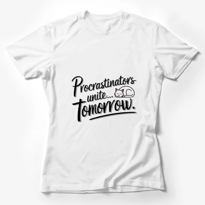 Humorous Procrastination Motto with Sleepy Cat Illustration Female T-Shirt