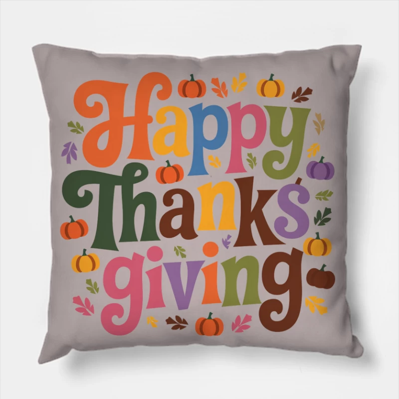Colorful Thanksgiving Greeting with Autumn Motifs Throw Pillow