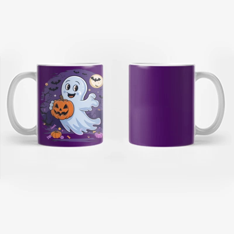 Cute Cartoon Ghost with Jack-o-Lantern on Spooky Halloween Night Coffee Mug