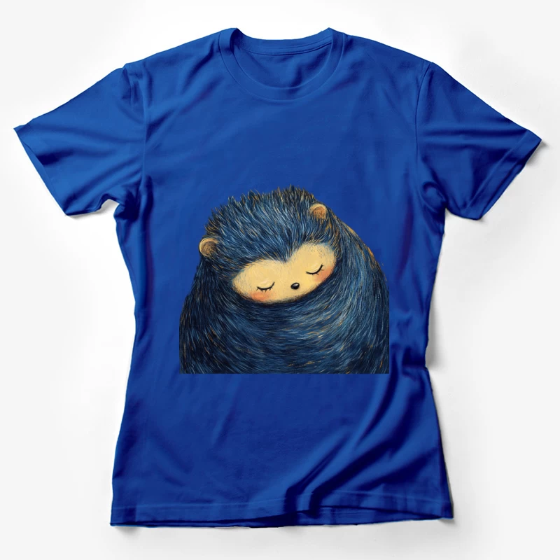 Adorable Blue Hedgehog Illustration: Cute Sleeping Cartoon Character Female T-Shirt