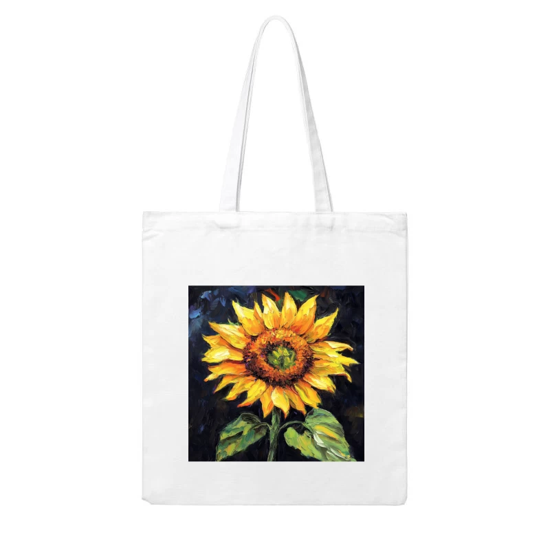 Vibrant Sunflower Oil Painting with Dark Background Cotton Tote Bag