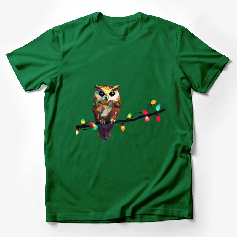 Geometric Owl on Branch with Christmas Lights Male T-Shirt