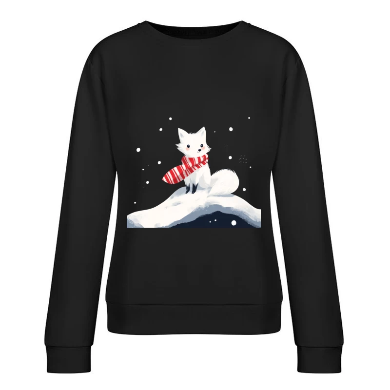 Cute Arctic Fox in Winter with Red Striped Scarf Female Pullover Sweatshirt