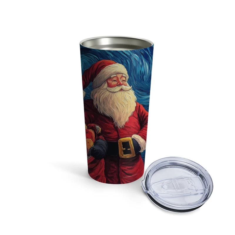 Santa Claus in Van Gogh's Starry Night Style Christmas Scene Travel Mug