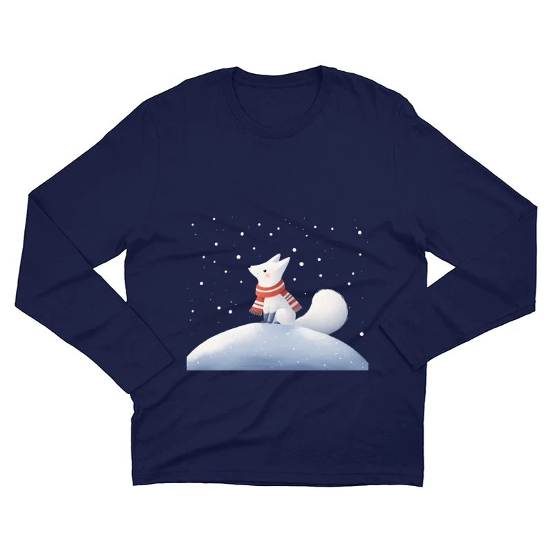 Cute Arctic Fox in Red Scarf on Snowy Hill Male Long Sleeve T-Shirt