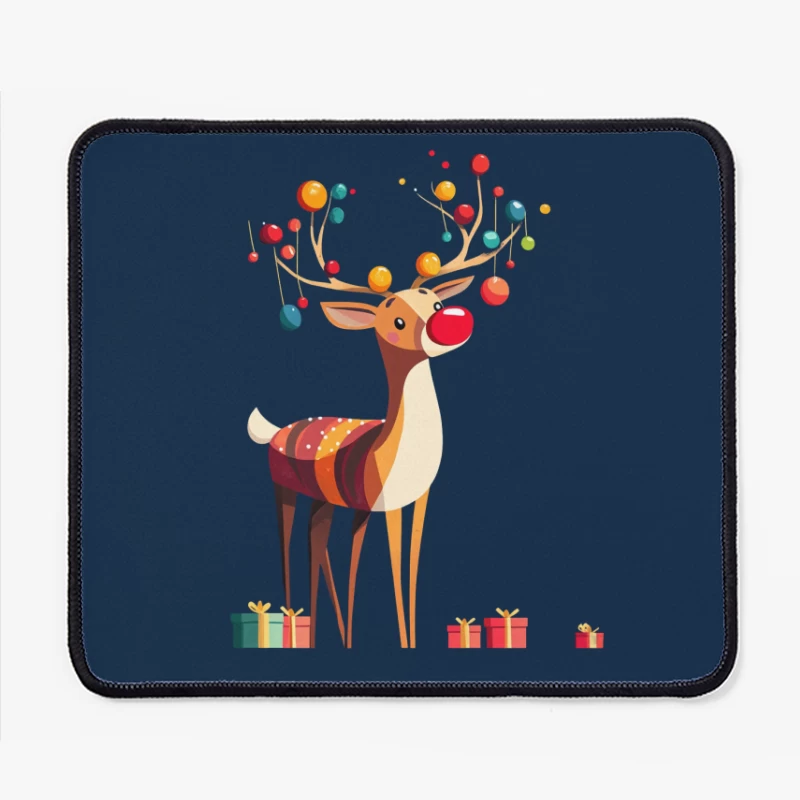 Festive Cartoon Reindeer with Christmas Ornaments and Gifts Mouse Pad