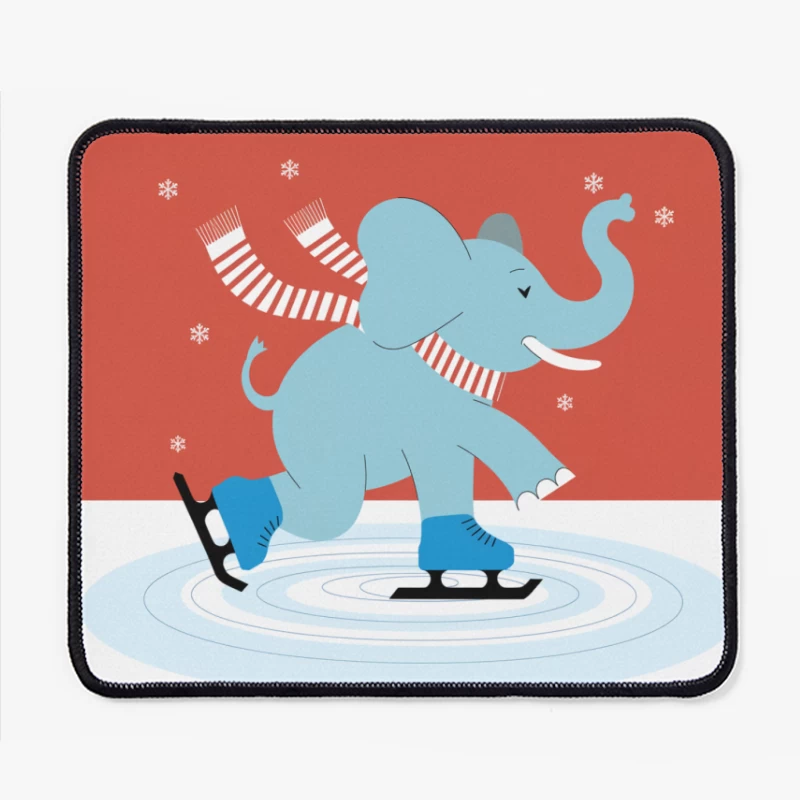 Cute Cartoon Elephant Ice Skating in Winter Mouse Pad