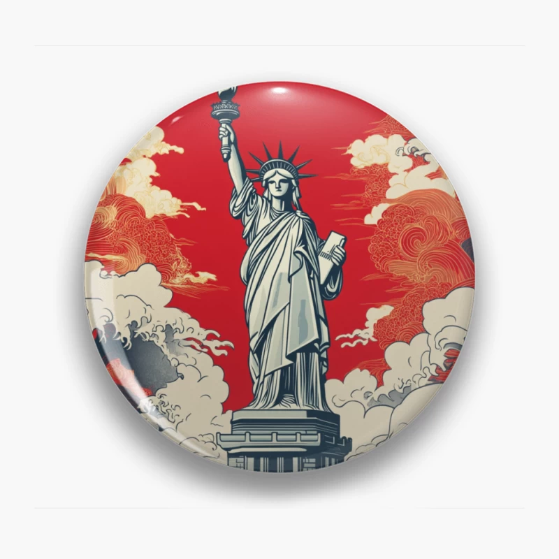 Patriotic Pop Art: Statue of Liberty Against Red Sky Pin