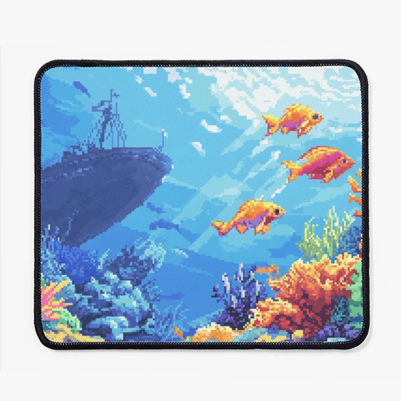 Vibrant Pixel Art Underwater Scene with Coral Reef and Shipwreck Mouse Pad