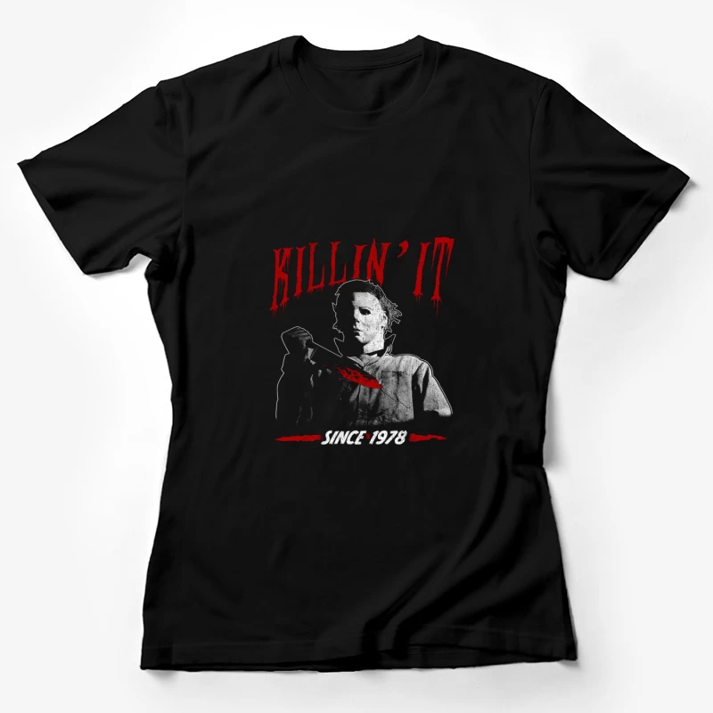 Iconic Red Illustration of Michael Myers: Horror Movie Pop Art Female T-Shirt