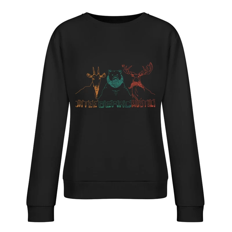 Whimsical Wildlife Trio with Typographic Element Female Pullover Sweatshirt