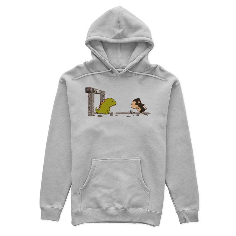 Cute Cartoon Dinosaur and Monkey Cause Jurassic Park Mayhem Male Pullover Hoodie
