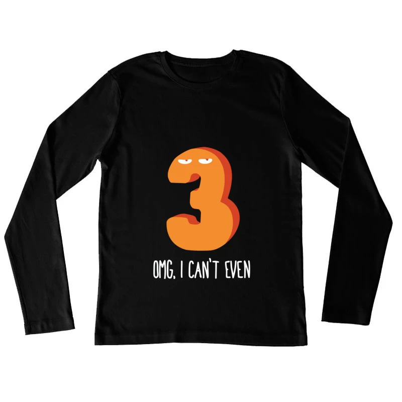 Animated Orange Number 3 Cartoon Character with Eyes Female Long Sleeve T-Shirt