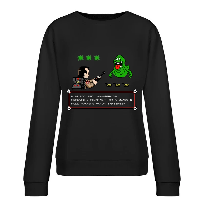 Retro Ghostbusters Pixel Art Featuring Slimer and Proton Pack Female Pullover Sweatshirt