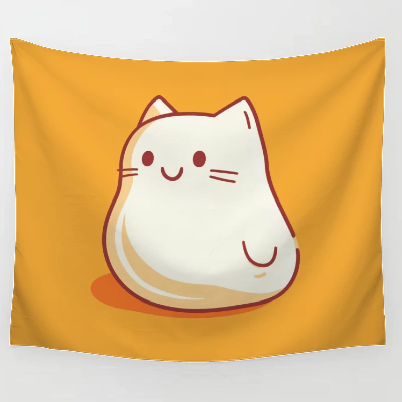 Adorable Minimalist Cartoon Cat Illustration Tapestry