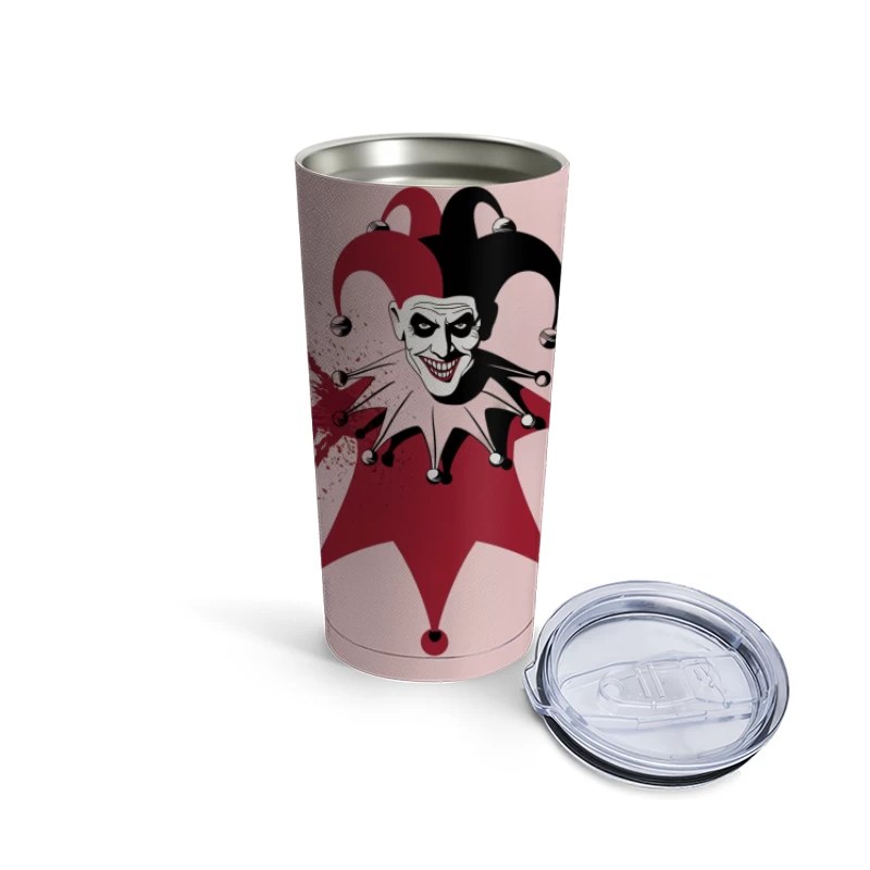 Gothic Joker Playing Card Illustration in Red and Black Travel Mug