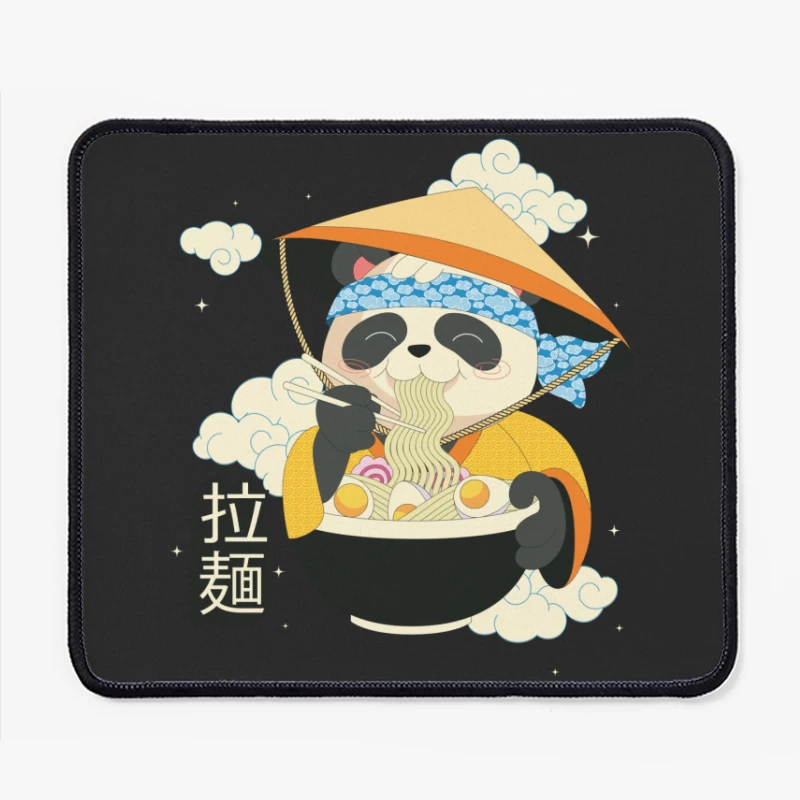 Cute Cartoon Panda Enjoying Asian Ramen noodle Mouse Pad