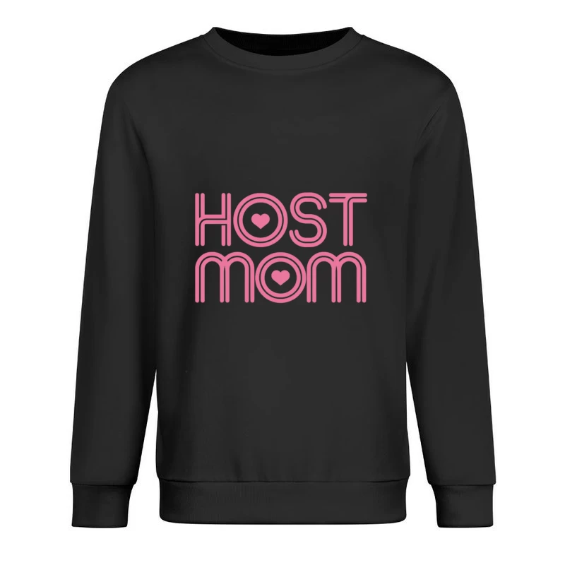 Pink Host Mom Typography with Hearts: Exchange Student Parenting Male Pullover Sweatshirt