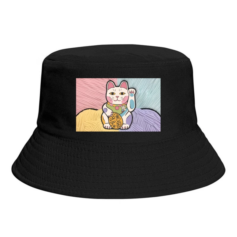 Adorable Maneki-Neko Lucky Cat Illustration in Pastel Colors Bucket Hat