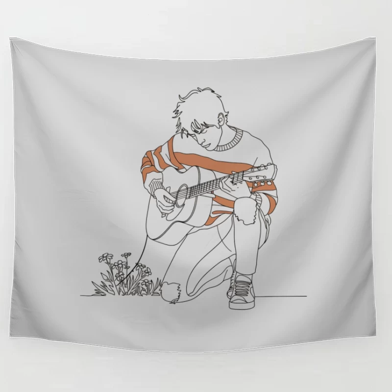 Line Drawing of Guitar Player in Striped Sweater with Flowers Male Tank Top