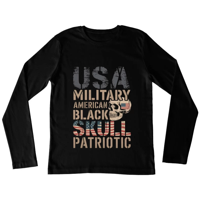 Patriotic American Military Typography with Skull Motif Female Long Sleeve T-Shirt
