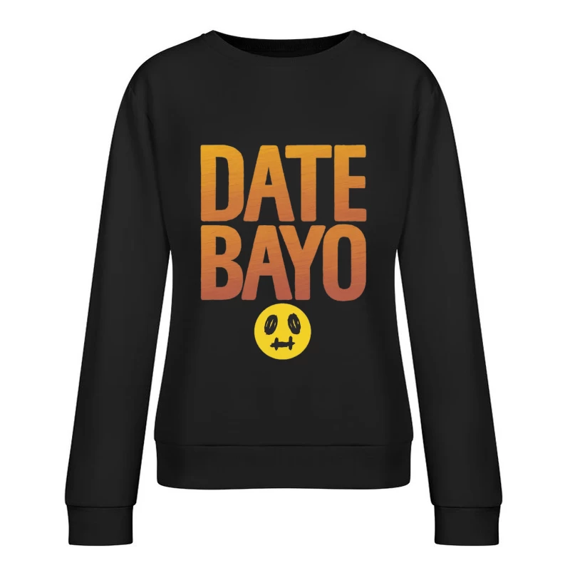 Date Bayo: Typographic Text Art with Smiley Face Female Pullover Sweatshirt